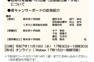 - 令和7年11月19日(水)に医療従事者向けの「令和7年度骨転移治療研修会」を開催いたします。 転移性...