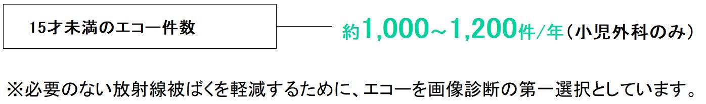 放射線は一定の確率でこどもたちのカラダに影響を与えることが知られています。私たちはできるだけこどもには放射線を使わずに診断を行っています。 たとえば、お腹の痛いこどもの診断にはCTを撮影されることが多いのですが、私たちは放射線を使わないエコーを選びます。どうしてもエコーで分からない時にCTを撮影しています。
