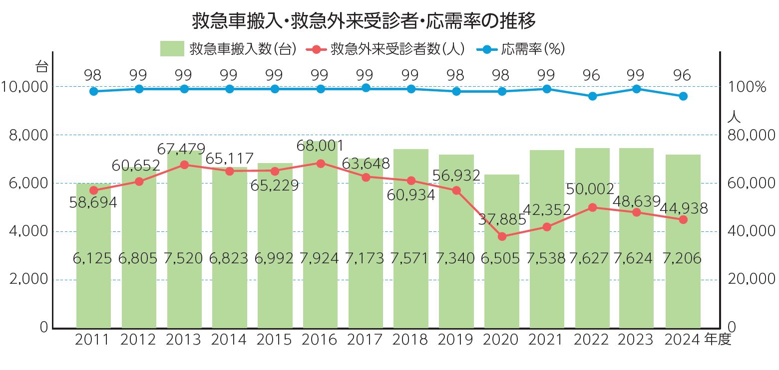 図3. 救急車搬入・救急外来受診者・応需率の推移
