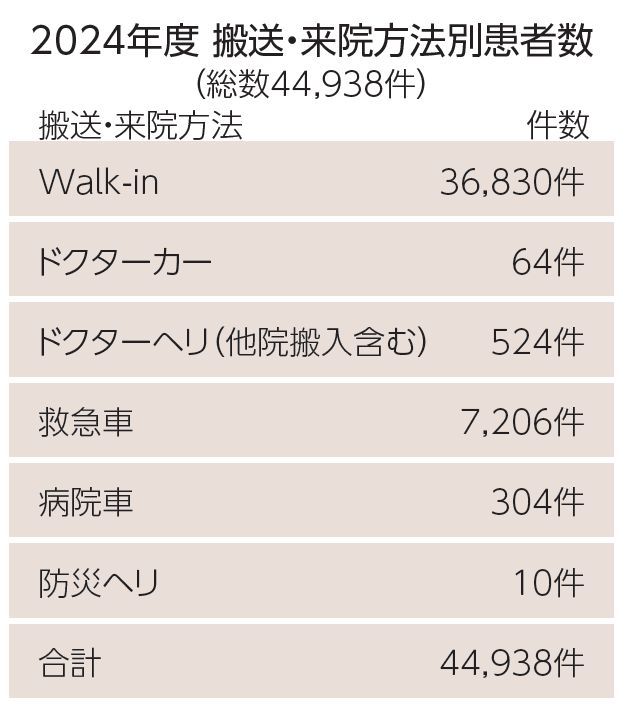 救急科は主にER部門を担っております。診療としては“Anyone, Anything, Anytime”の言葉を体現すべく、夜間も救急医を中心としたチームを配し、各診療科と連携しながら24時間ありとあらゆる救急患者様の診療にあたっています。緊急性の高い患者様を、専門診療へスムーズに繋げるための入口として、また原因のはっきりしない、複雑な病態の初期評価、初期診療の場として、そして患者様の夜間、時間外の緊急診療の場として、皆様のお役に立てればと思っております。 患者様、医療機関の皆様そして地域全体の「まさかの時」に頼れる場所として、今後も歩みを進めてまいります。