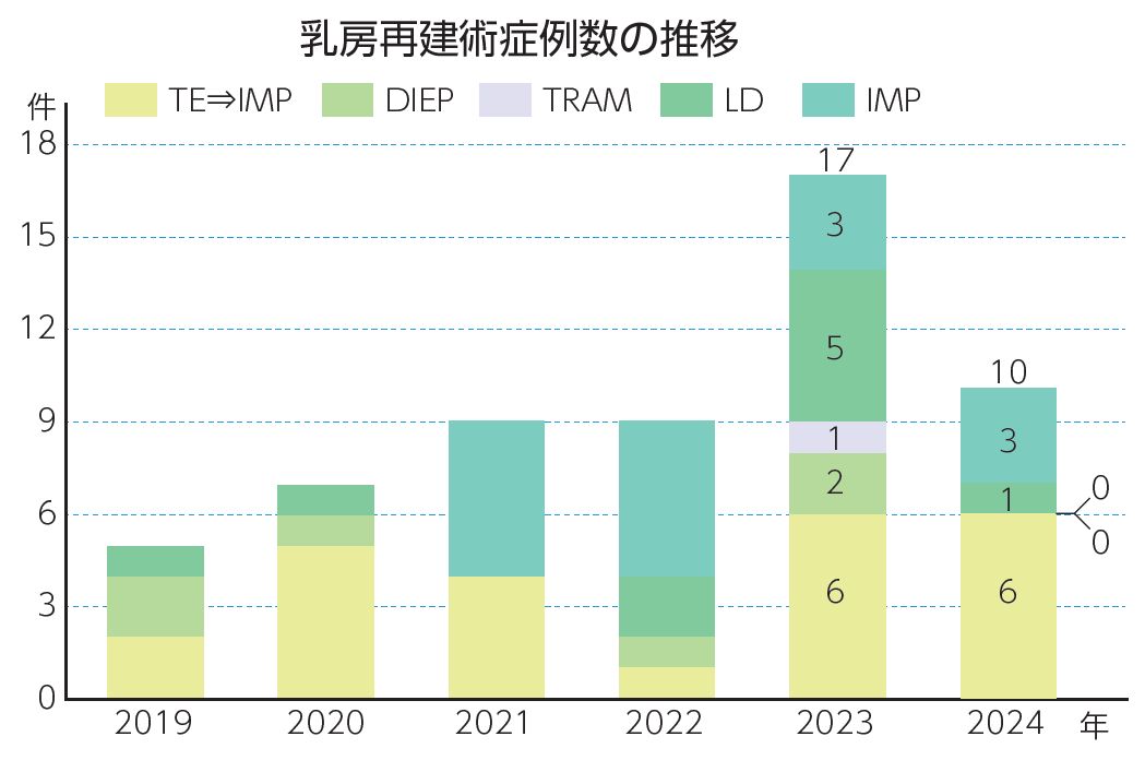 図2 乳房再建術症例数の推移