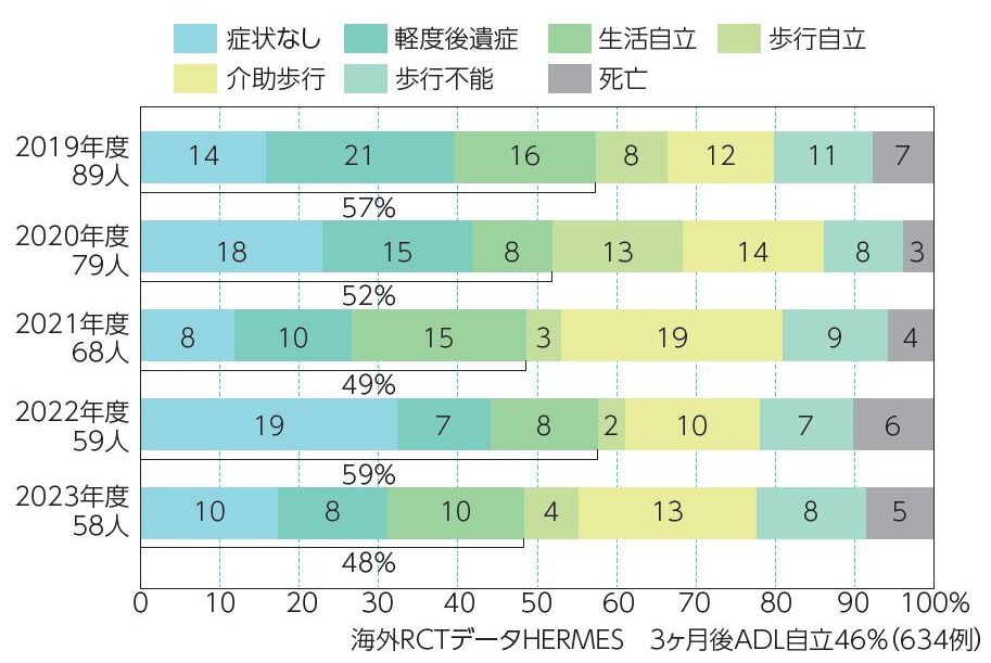 図3.血管内治療3ヶ月後の予後(発症前ADL自立症例のみ)