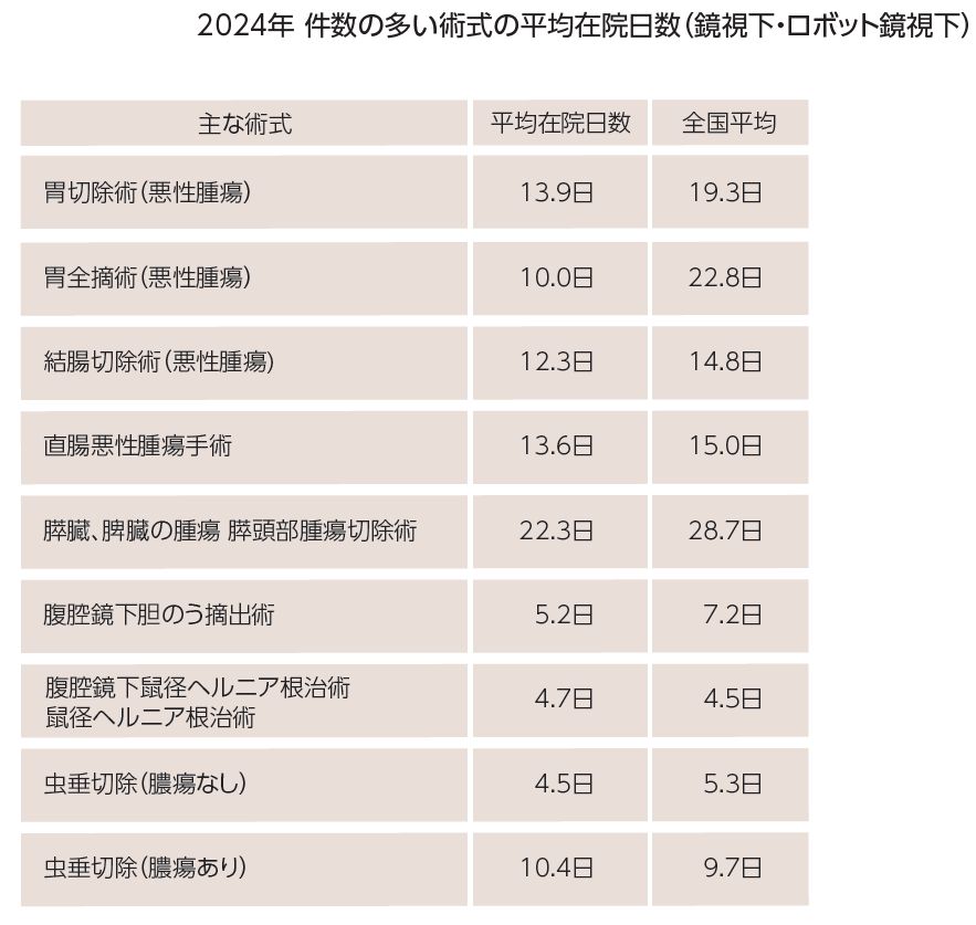 表2 件数の多い術式の平均在院日数